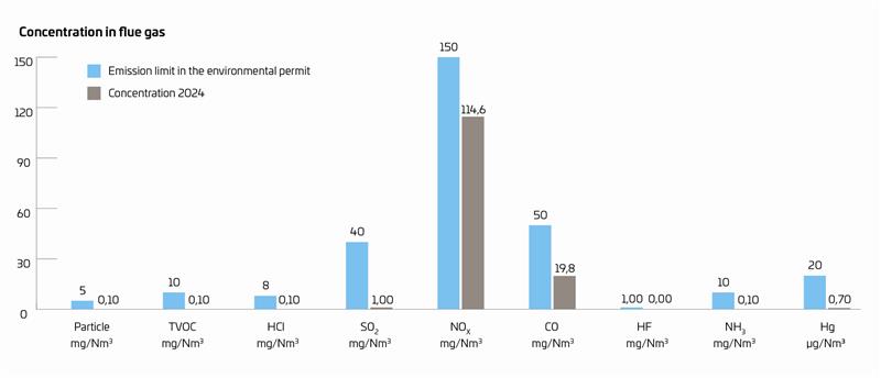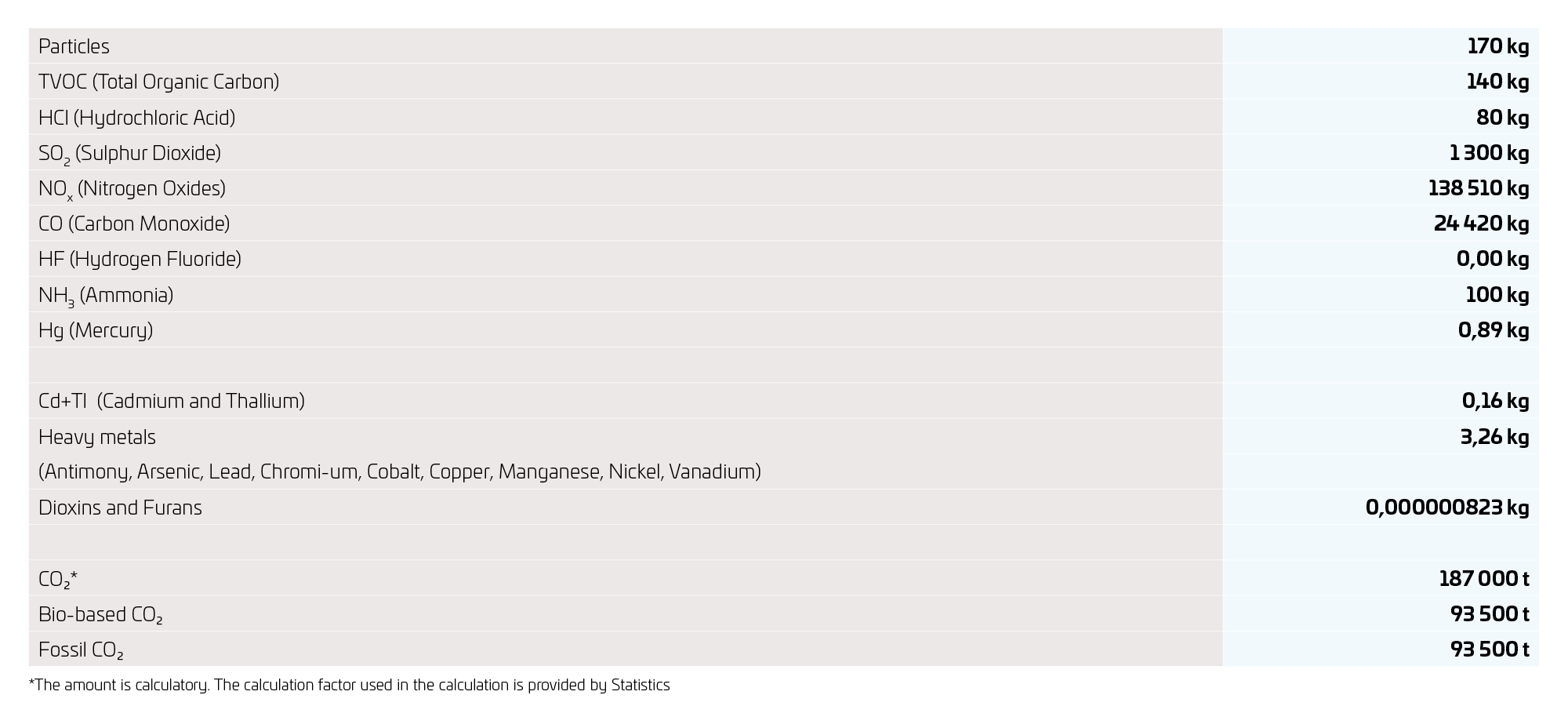 In addition to air emissions, we monitor the consistence of the condensation water formed in the flue gas treatment process as well as the consistence of the surface and groundwater in the area. No significant changes have occurred in the consistence of the condensation water or in the quality of the surface and groundwater during the plant operation.