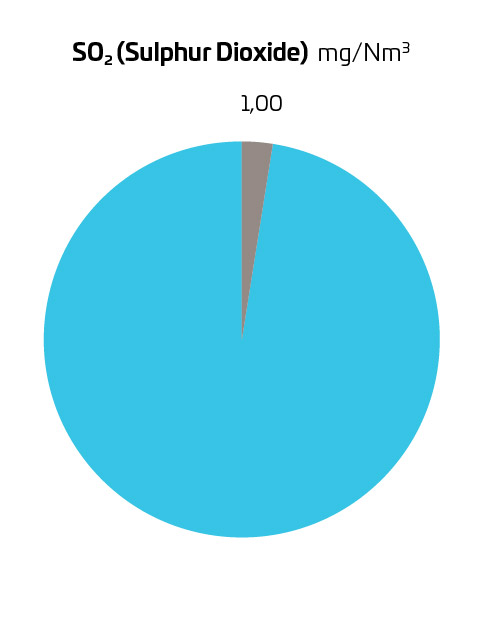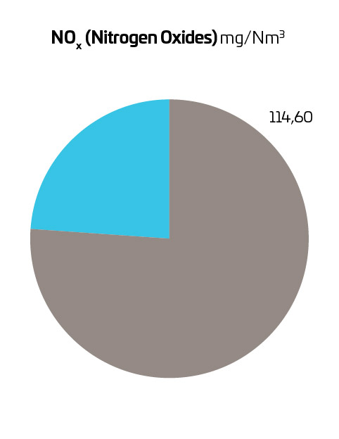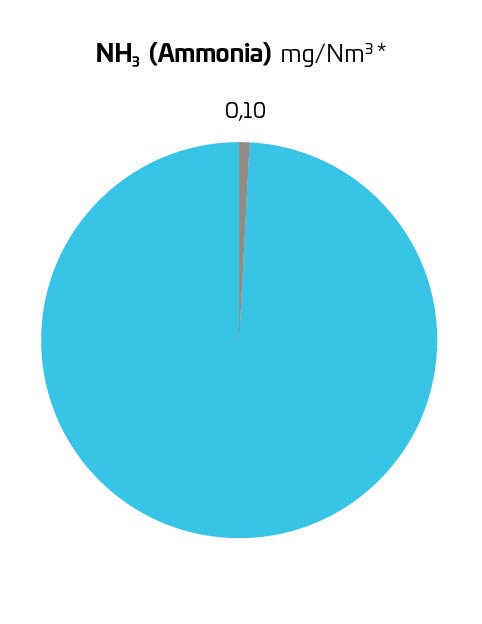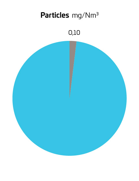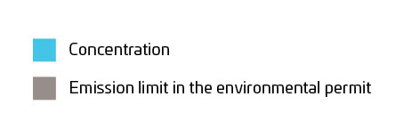 Monitoring air emissions is a crucial part of environmental impact assessment. We conduct continuous air emissions monitoring and report the results regularly to the authorities. The diagram below presents the measurement results for 2024: the full pie chart represents the limit value for a pollutant as defined in the environmental permit, while the grey area inside the circle indicates the actual measured concentration.