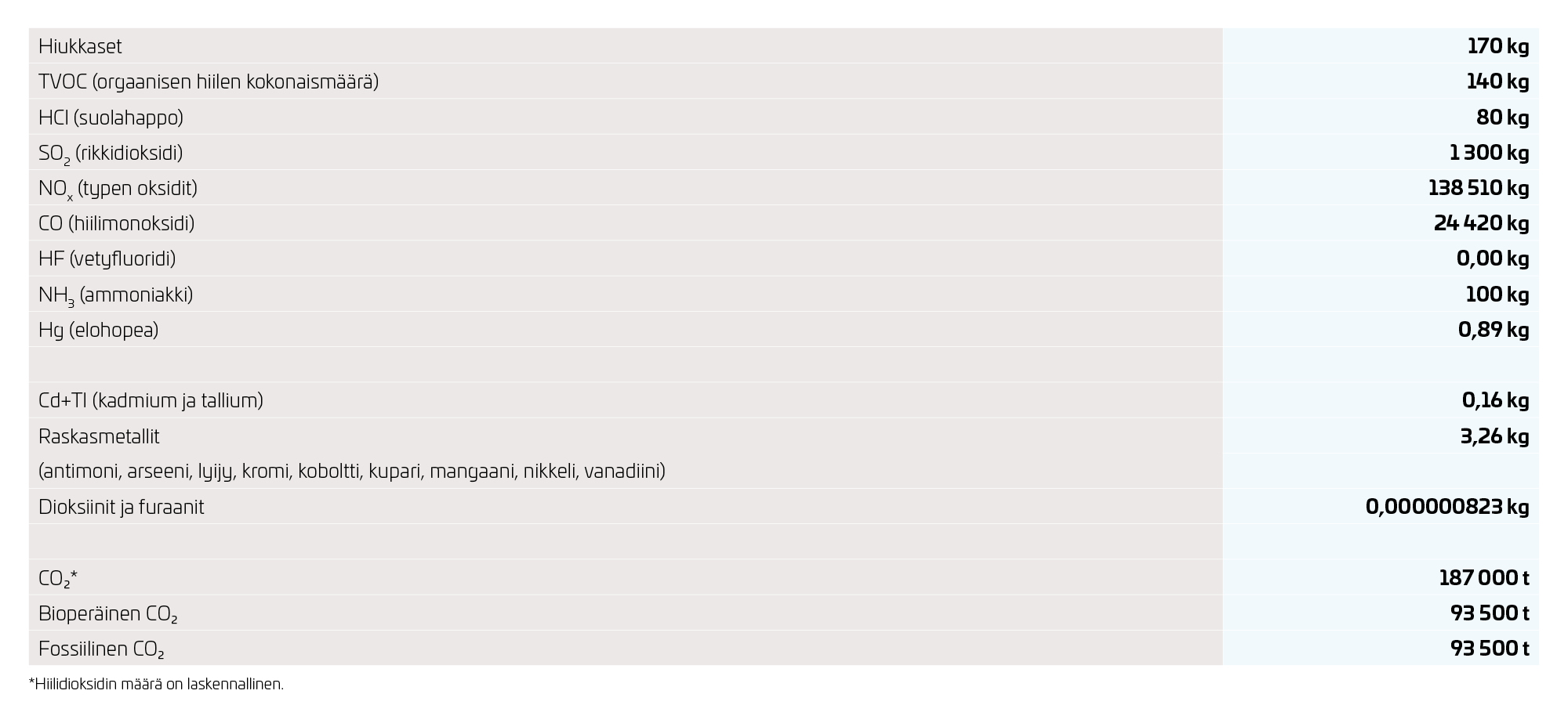 Ympäristöjohtamisemme perustuu ISO 14001 -sertifioituun järjestelmään, joka ohjaa toimintaamme ja kehitystyötämme. Ympäristöohjelmamme pohjautuu huolelliseen ympäristönäkökohtien tunnistamiseen, ja sen puitteissa olemme viime vuonna keskittyneet muun muassa savukaasujen puhdistuksessa käytettävien kemikaalien kulutuksen optimointiin. Olemme myös aktiivisesti mukana hankkeissa, jotka tukevat kiertotalouden kehitystä ja resurssitehokkuutta.